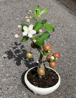 夏に妻が 実った『姫リンゴ』のミニ盆栽を買ってきた