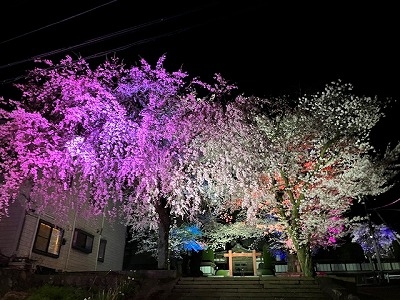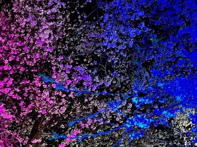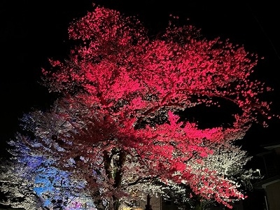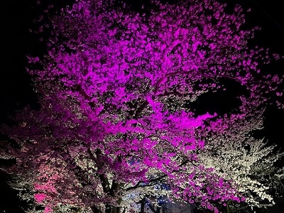 カラーLEDで照らされた桜の鮮やかさは 写真で表すのが難しい