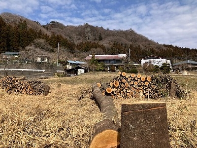 桜の切り株 直径は50cm 積上げられた丸太の山